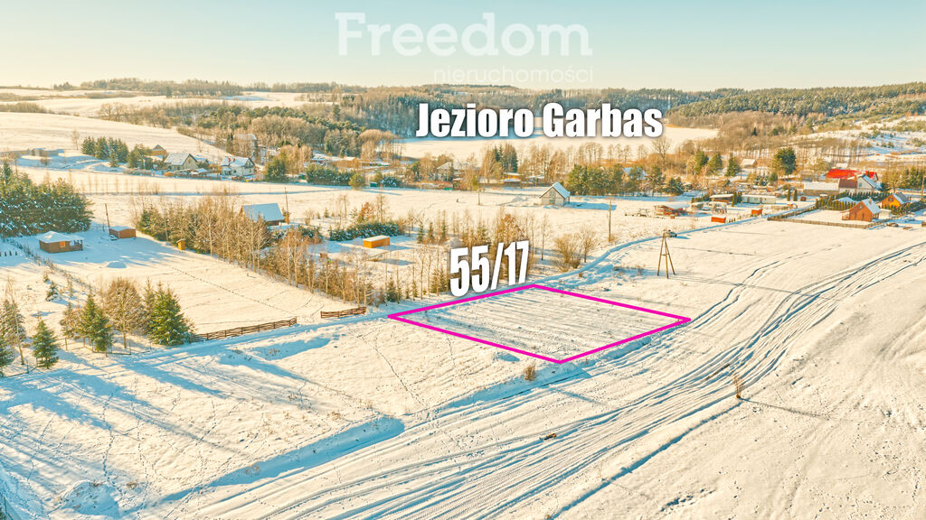 Na sprzedaż atrakcyjna działka budowlana, każda o powierzchni 1001m², położona w miejscowości Liski, nad malowniczym jeziorem Garbas